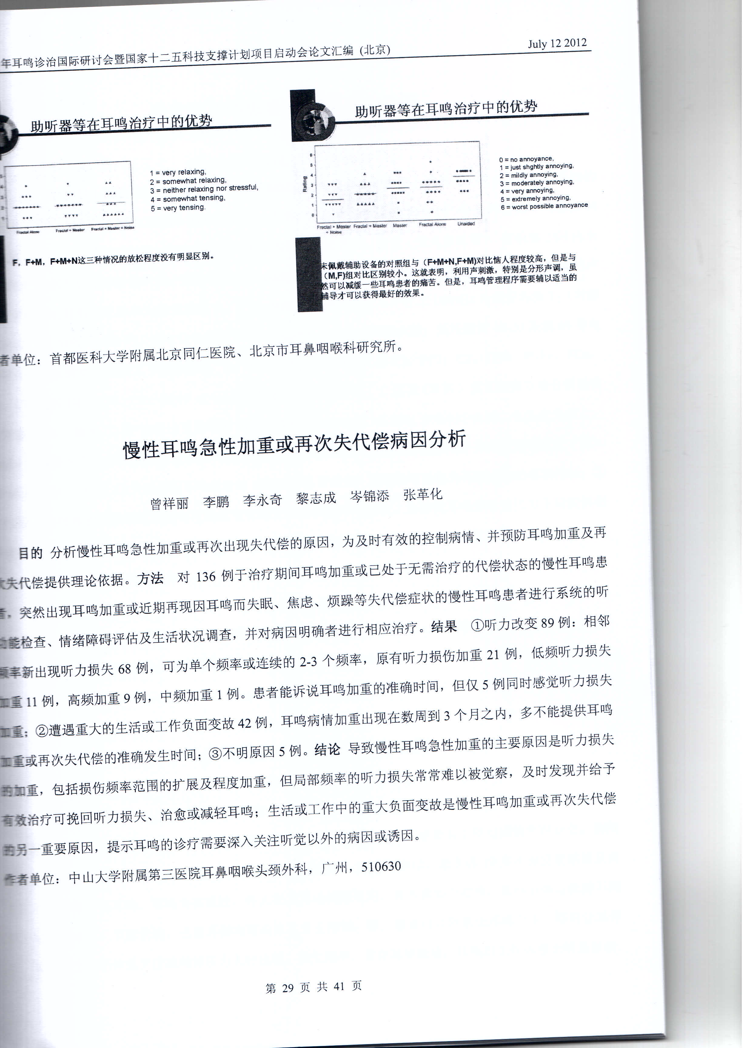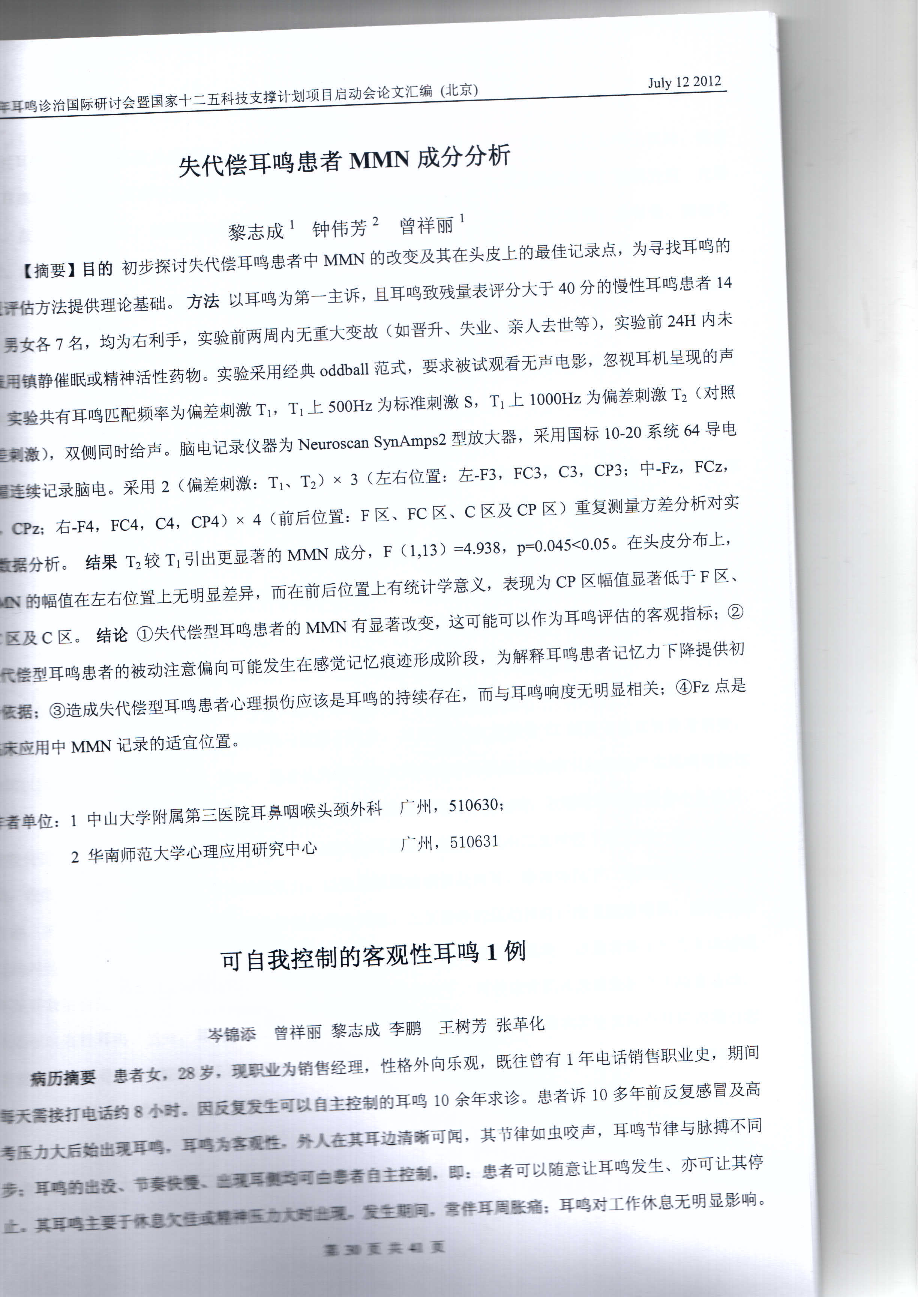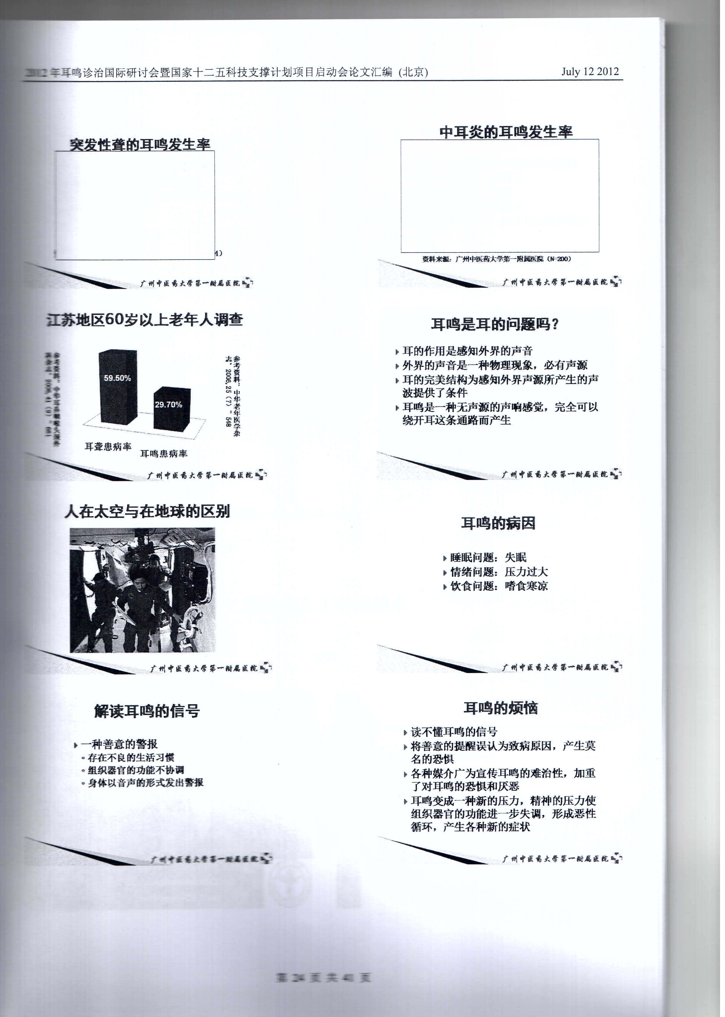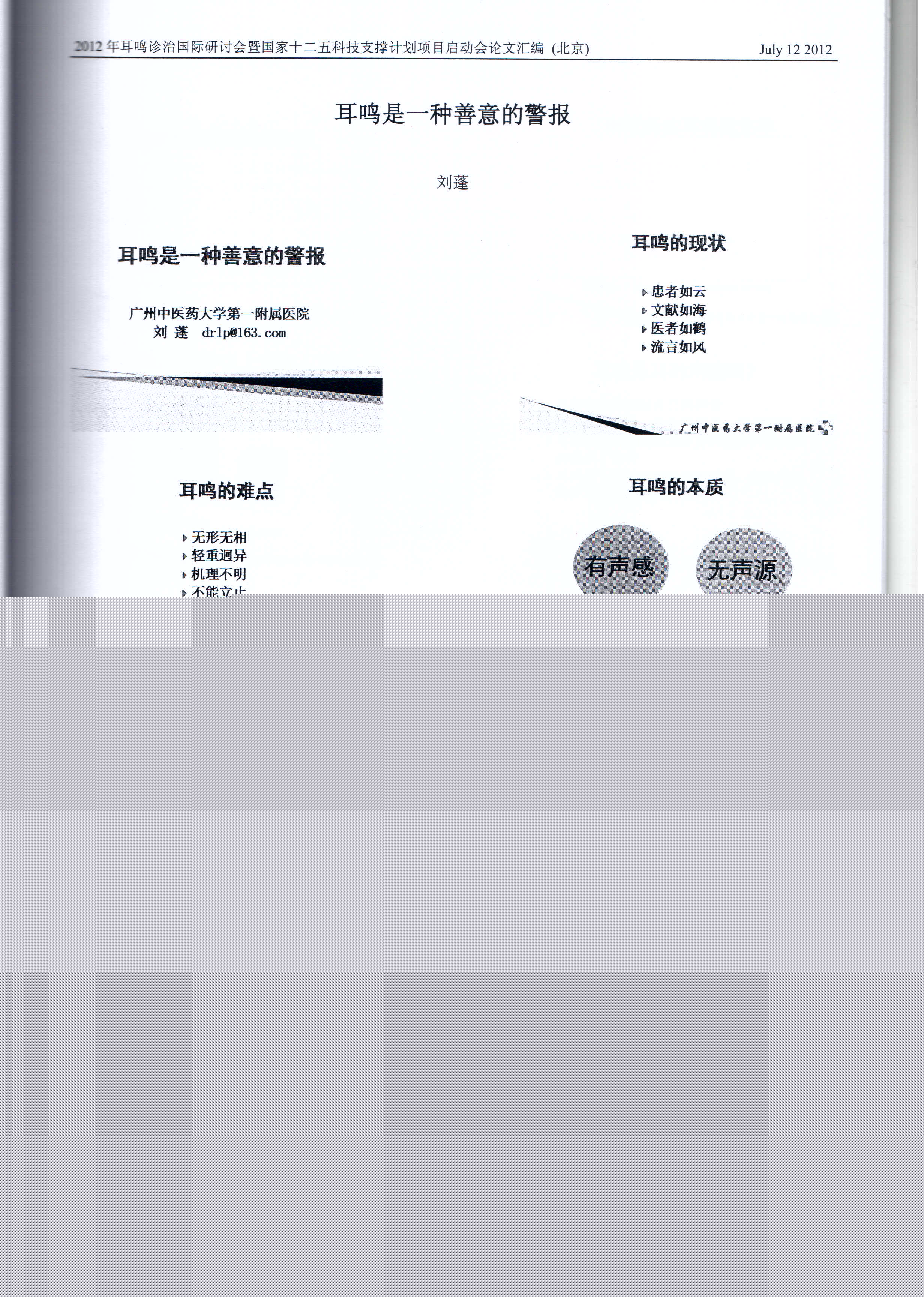2012年耳鸣诊治研讨会&国家十二五科技支撑计划项目